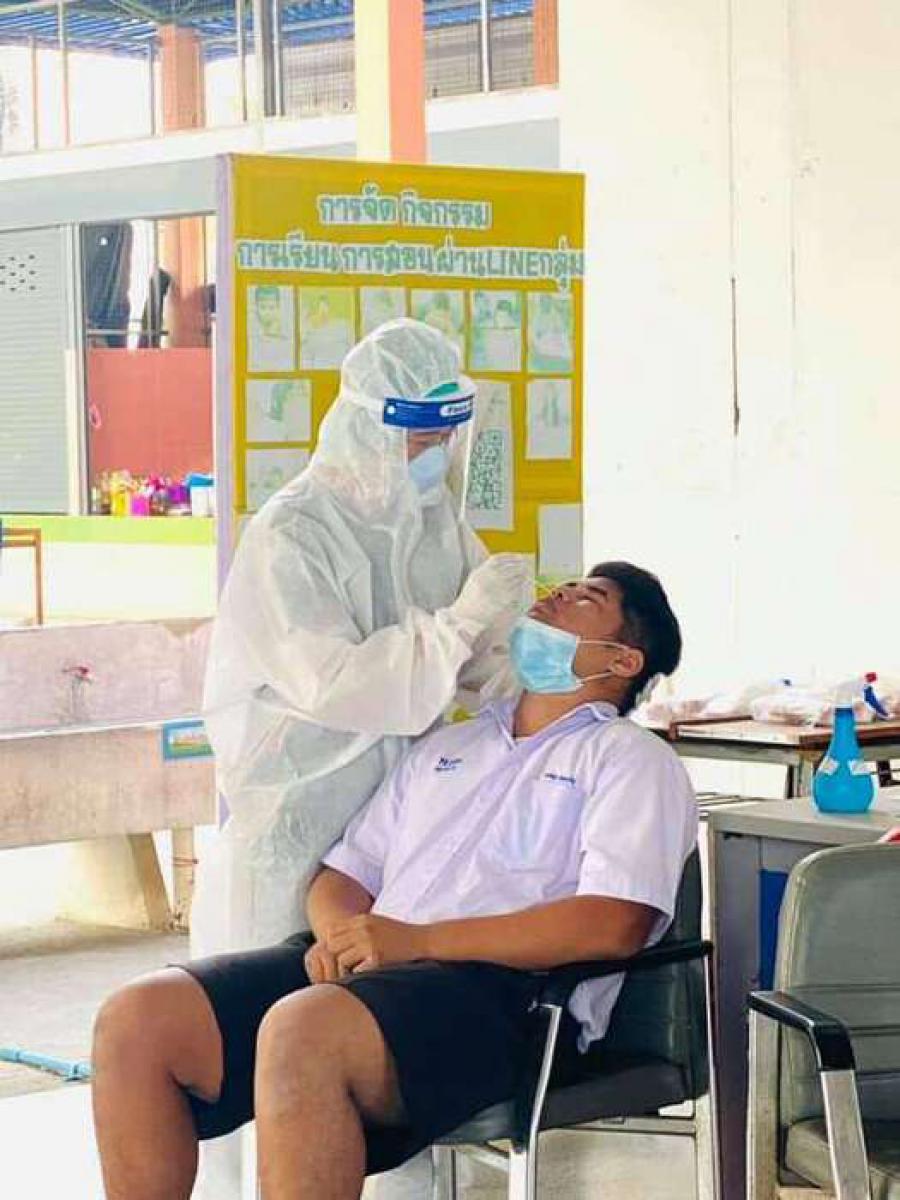 โรงเรียนเทศบาลอ้อมน้อย ได้รับความอนุเคราะห์จากโรงพยาบาลกระทุ่มแบน นำคณะเจ้าหน้าที่ให้บริการตรวจเชิงรุกหาโรคติดเชื้อไวรัสโควิด-19 ให้กับผู้บริหาร คณะครู บุคลากร นักเรียนระดับชั้นมัธยมศึกษาตอนปลาย และพ่อค้า แม่ค้าในโรงเรียน เพื่อสร้างความมั่นใจในการให้บริการของโรงเรียนเทศบาลอ้อมน้อย S:0