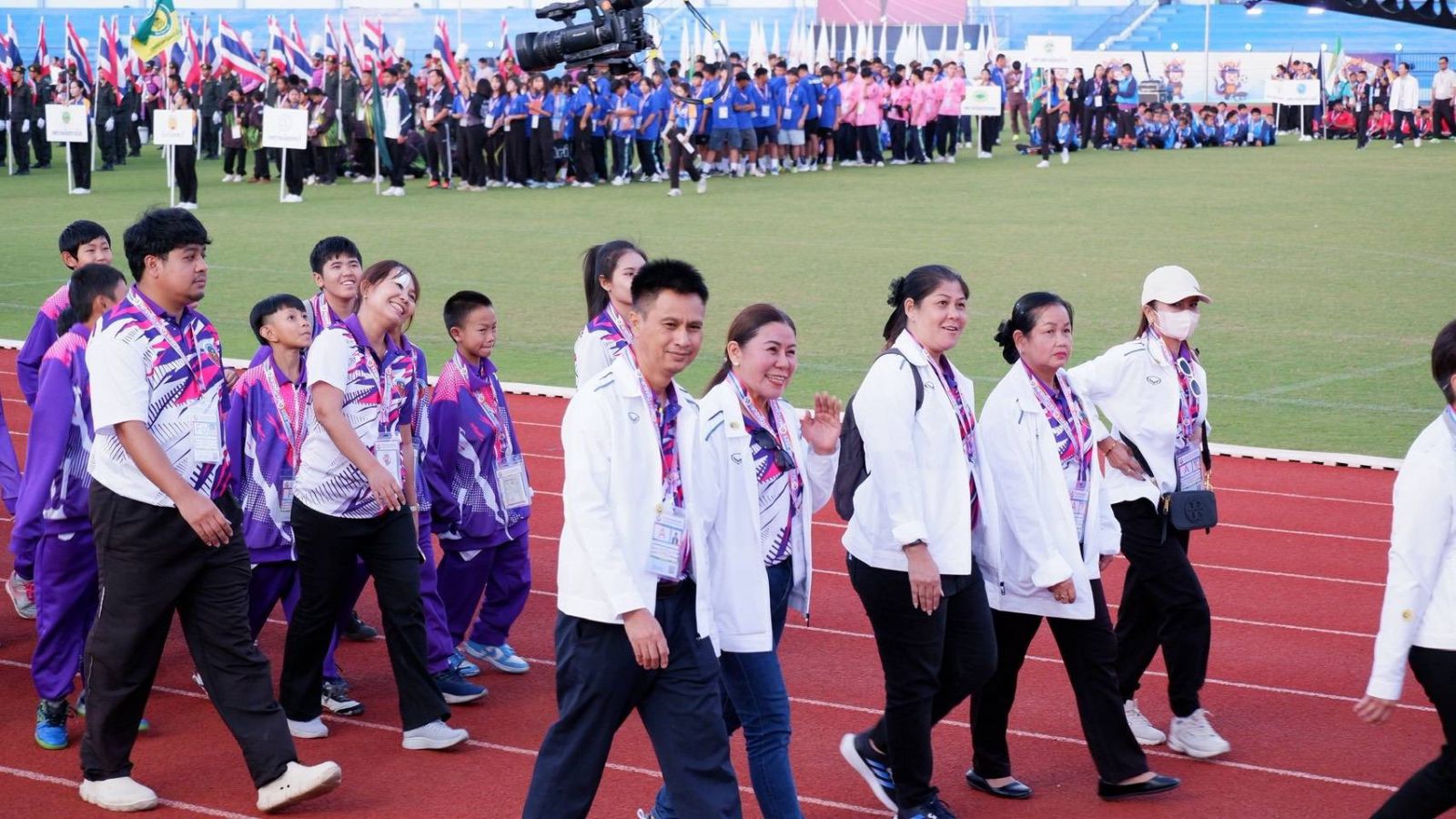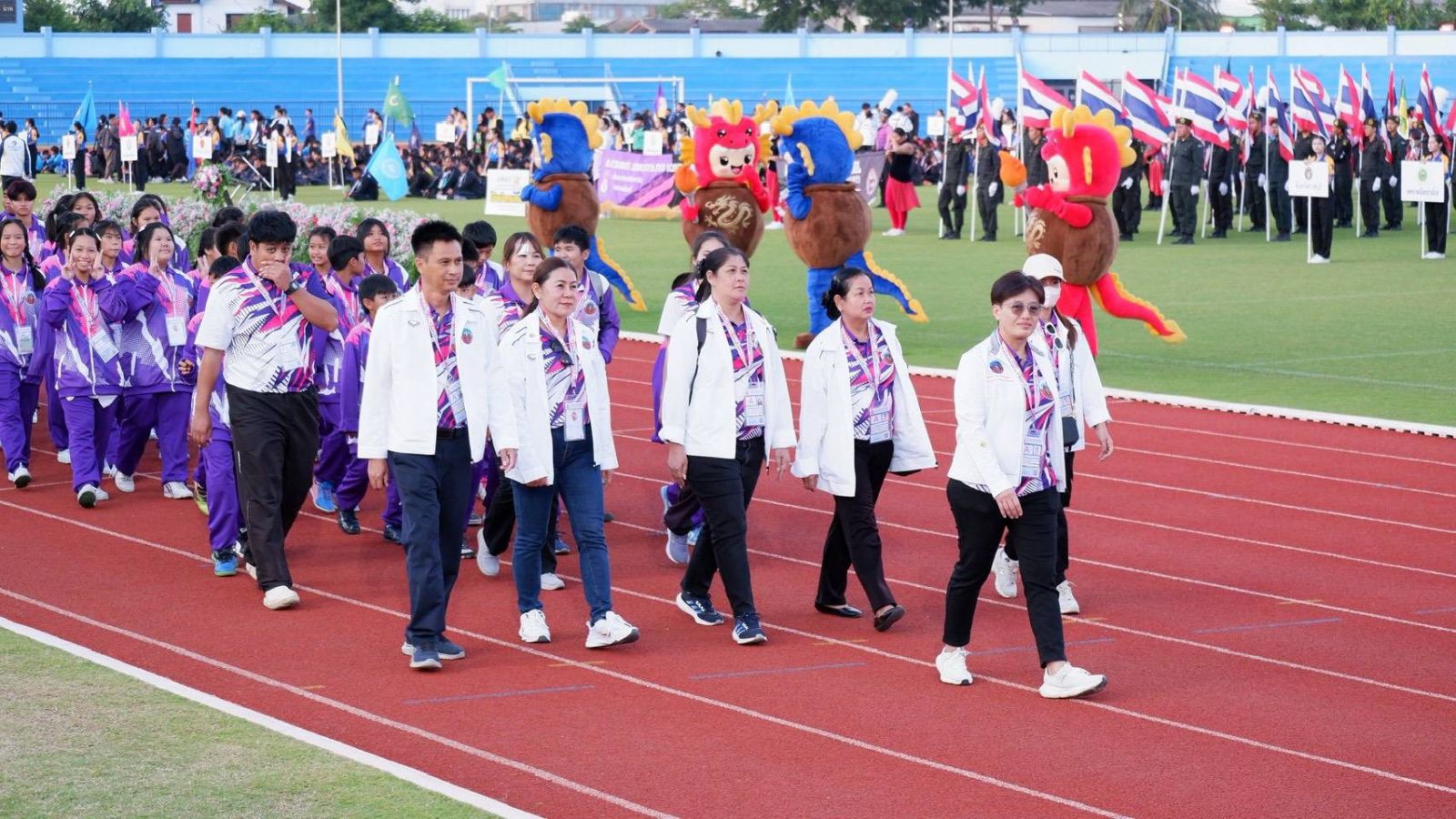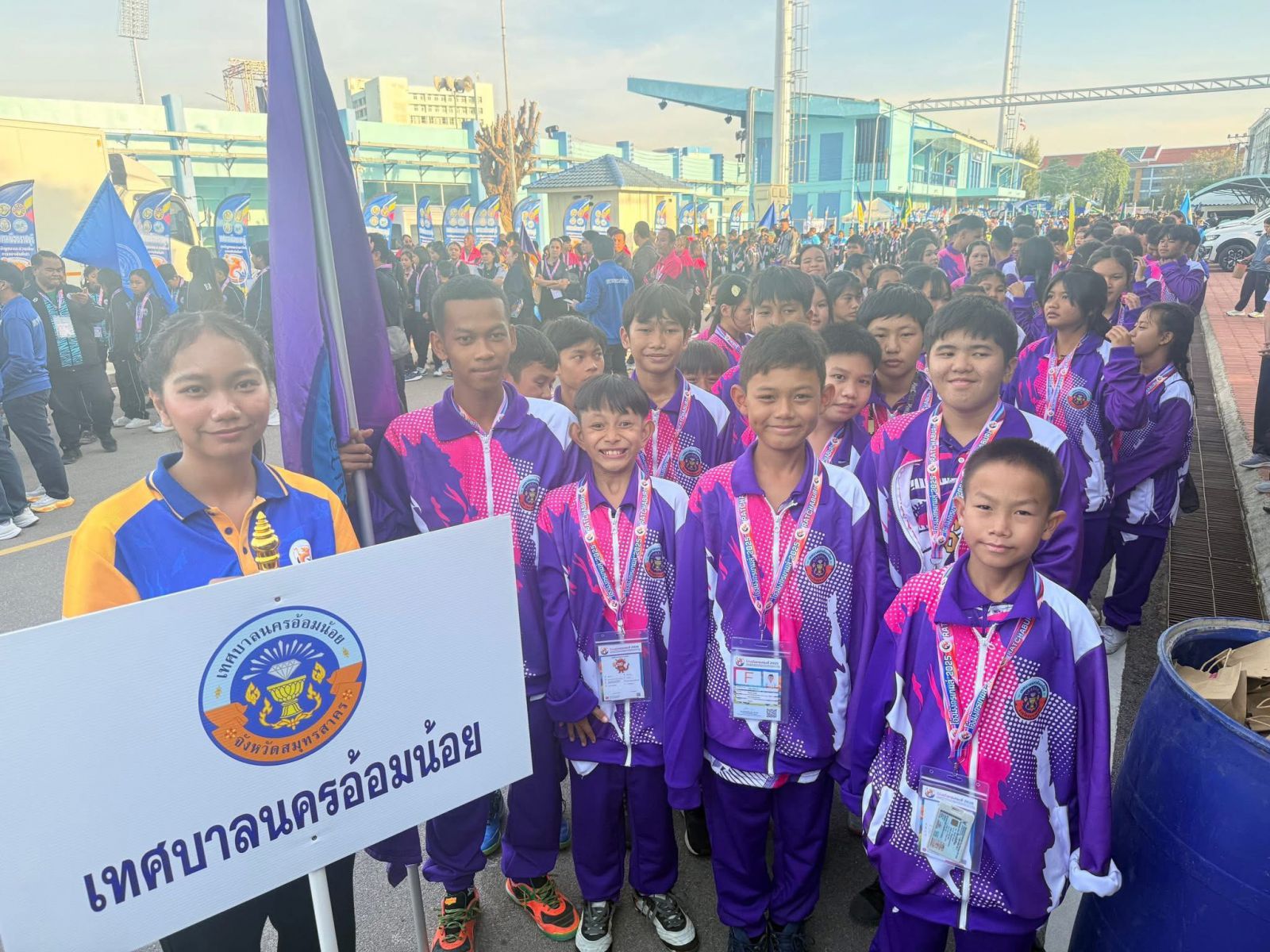 นางสาวบุษยพรรณ แสงไชยพัฒน์ ผู้อำนวยการโรงเรียนเทศบาลอ้อมน้อย มอบหมายให้ นางสาวณัฐนันท์ธร สุวรรณชาศรี รองผู้อำนวยการสถานศึกษา คณะครู และนักเรียน ร่วมพิธีเปิดการแข่งขันกีฬานักเรียนโรงเรียนในสังกัดองค์กรปกครองส่วนท้องถิ่นแห่งประเทศไทย ครั้งที่ 40 รอบคัดเลือก ระดับภาคกลาง ประจำปี 2569 “โอ่งมังกรเกมส์ 2025” ณ สนามกีฬากลางจังหวัดราชบุรี